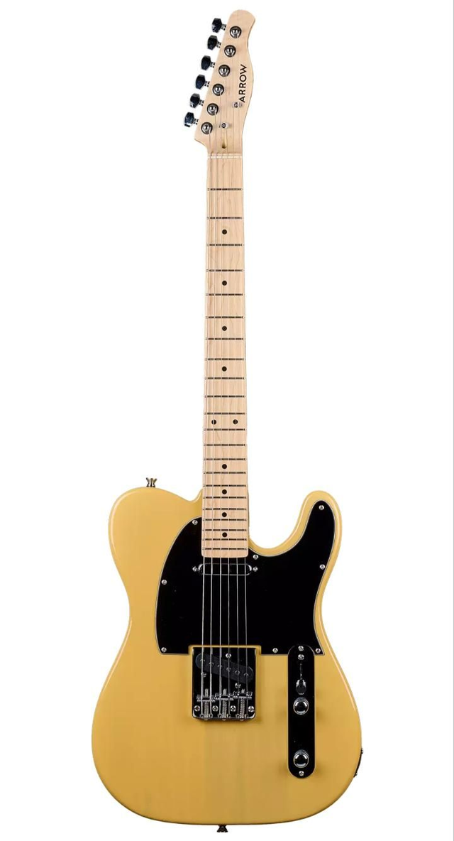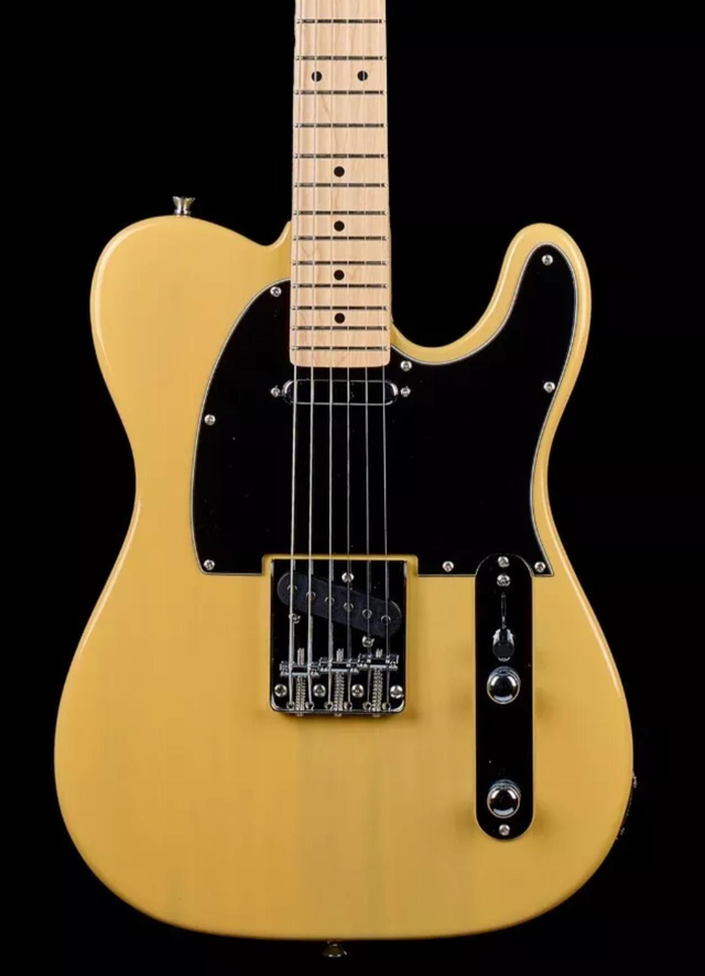 Fantastic quality Telecaster style guitar on a budget. With a solid wood body finished in blonde and a satin maple neck. Two single single coil pickups and a classic "ashtray" bridge. This is the ultimate "No frills" rock & roll machine!